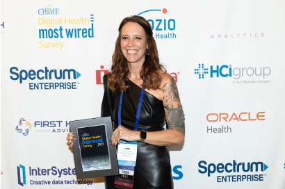 Terri Couts, Chief Digital Officer of the Guthrie Clinic, receives recognition as CHIME's 2023 Innovator of the Year.