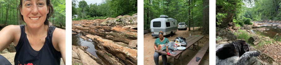 #BTS1. Amy Chacko, President of the New England HIMSS chapter shares her āwhyā in coming out to hike with us. 2. The day after the hike, we overheard some locals at the coffee shop talking about a swimming hole. Joy asked for directions and took Juno to check it out. |